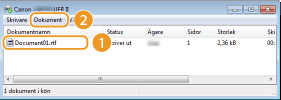 Välj dokumentet på skärmen <Status utskriftsjobb>