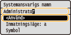 Ange upp till 32 tecken för systemansvarigs namn, välj <Använd> och tryck sedan på