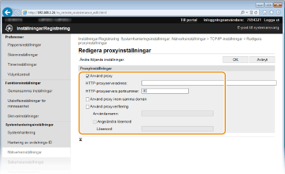 Markera kryssrutan [Använd proxy] och ange nödvändiga inställningar.