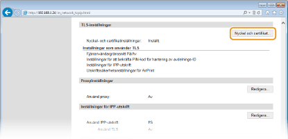 Klicka på [Nyckel och certifikat] i [TLS-inställningar].