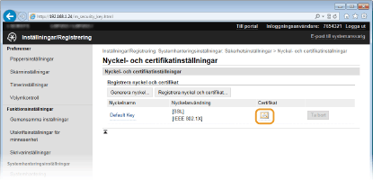 Klicka på [Nyckel- och certifikatinställningar] om du vill verifiera ett nyckelpar och på [CA-certifikatinställningar] om du vill verifiera ett CA-certifikat.