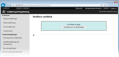 Kontrollera certifikatinformationen och klicka på [Verifiera certifikat].