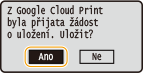 Zařízení můžete registrovat také z mobilního zařízení nebo aplikace Google Chrome. Před dokončením registrace se na displeji zařízení zobrazí následující obrazovka pro potvrzení. Klepnutím na možnost <Ano> registraci dokončíte.