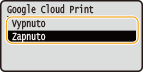 Povolte v zařízení funkci Google Cloud Print. Funkci Google Cloud Print můžete v zařízení také zakázat.
