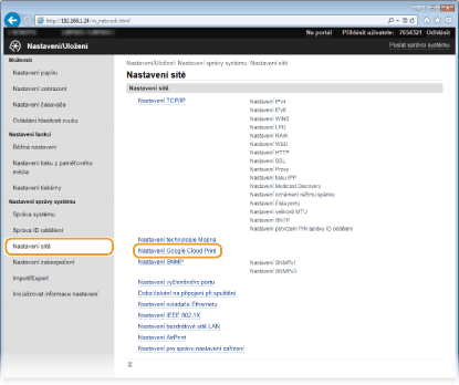 [Nastavení Google Cloud Print].