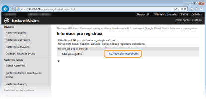 Klikněte na odkaz adresy URL zobrazené v poli [URL pro registraci].