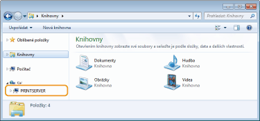 Ze složky [Network] (Síť) nebo [My Network Places] (Místa v síti) vyberte tiskový server.