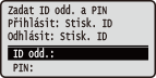 / vyberte možnost <ID oddělení> nebo <ID správce systému> a stiskněte tlačítko . |