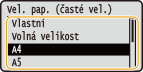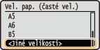 Výše uvedená obrazovka nastavení se po vložení papíru nezobrazíPokud do víceúčelové přihrádky vkládáte stále stejný papír, můžete nastavení papíru přeskočit tím, že nastavíte tuto velikost a typ papíru jako výchozí. Pokud je však nastavena výchozí velikost a typ papíru, obrazovka nastavení se nezobrazuje. Chcete-li, aby se obrazovka zobrazovala, vyberte pro položku <Určit při vkládání papíru> (Registrace výchozího nastavení papíru pro víceúčelovou přihrádku).