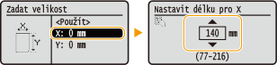 / nebo číselných tlačítek zadejte délku strany <X> a klepněte na tlačítko .![]() |