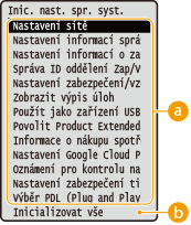 <Nastavení sítě> <Inicializovat nastavení sítě> <Ano> Restartujte zařízení |