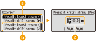 <Přesadit kratší stranu (Zadní)>/<Přesadit delší stranu (Zadní)>