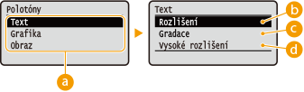 Když tisknete z počítače, nastavení provedené na ovladači tiskárny má přednost. Když se nastavení [Graphics Mode] na ovladači tiskárny změní na [UFR II Mode] a [Barcode Adjustment Mode] se změní na [Printer Default], upřednostní se nastavení provedené na ovládacím panelu.