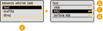 Tato část popisuje nastavení pro převod dat barev na data stupňů šedé.
