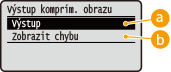 Vyberte možnost <Výstup> nebo <Zobrazit chybu>