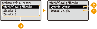 Vyberte možnost <Vynutit výstup> nebo <Zobrazit chybu>