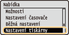 ![]() Dostupnost nastaveníVšechna nastavení tiskárny popsaná v tomto oddíle kromě nastavení <Změna velikosti papíru> (Změna velikosti papíru) jsou dostupná pouze pro tisk PS/PCL. Zadávání těchto nastavení není nutné například při tisku pomocí ovladače tiskárny UFR II.