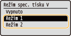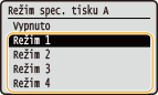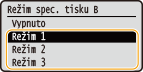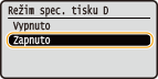 Pokud se problém nevyřeší ani po nastavení této položky, nastavte <Režim speciálního tisku D> na <Zapnuto>. Režim speciálního tisku D