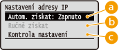 Zkontrolujte, že je možnost <Automatická adresa IP> nastavena na hodnotu <Zapnuto>.