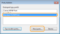 Ze seznamu [Dostupné typy portů] vyberte položku [Standardní port TCP/IP] a klikněte na tlačítko [Nový port].