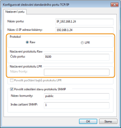 V možnosti [Protokol] vyberte [Raw] nebo [LPR].