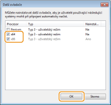![]() Podle operačního systému tiskového serveru vyberte další ovladače z následujících.