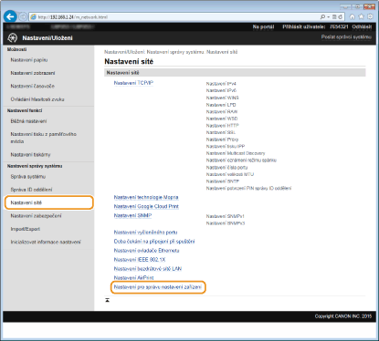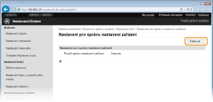 Použití doplňků aplikace iW Management ConsoleMusíte povolit nastavení vyhrazeného portu a protokolu SNMP. Při nastavování SNMP nastavte [Povolení přístupu MIB] na [Čtení/Zápis] pro oba doplňky SNMPv3 i SNMPv1. Nastavení vyčleněného portu Monitorování a ovládání zařízení pomocí protokolu SNMP