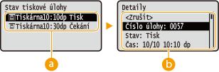 .![]() <Stav tiskové úlohy>Zobrazí seznam dokumentů, které se zpracovávají nebo čekají na zpracování.