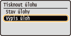 Vyberte možnost <Výpis úloh tisku> a stiskněte tlačítko