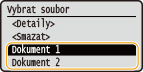 Jsou-li v paměti uloženy zabezpečené dokumenty od dvou či více uživatelů, před zobrazením obrazovky <Vybrat uživatele> se zobrazí obrazovka <Vybrat soubor>. Vyberte své uživatelské jméno a stiskněte tlačítko