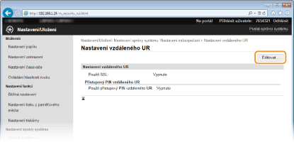 Nastavení kódu PIN pro Vzdálené uživatelské rozhraní