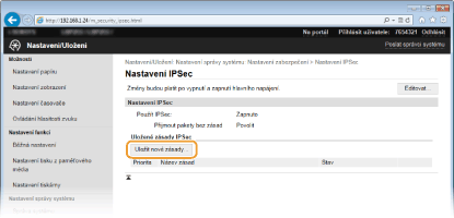 Použití protokolu IPSec s filtrem IP adresPřed zásadami protokolu IPSec se použijí nastavení filtru IP adres.