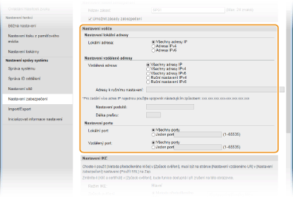 Vyberte sadu IPSec pro všechny IP pakety, které se odesílají do adresy IPv4 přístroje nebo z ní.