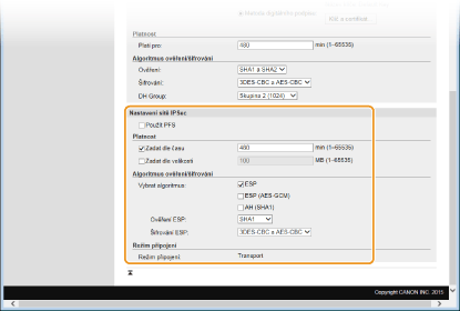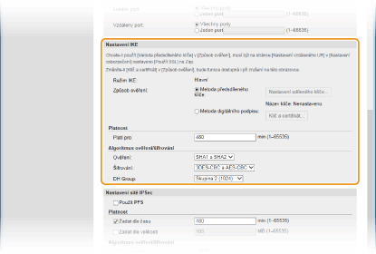 Zadejte nastavení pro [Platí pro] a [Ověření]/[Šifrování]/[DH Group].