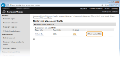 Klikněte na tlačítko [Uložit výchozí klíč] napravo od páru klíčů, který chcete použít.