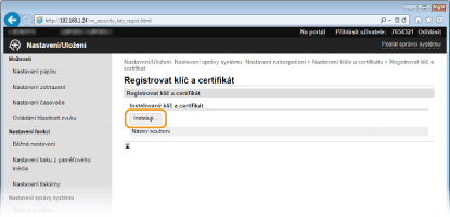 Klikněte na možnost [Registruji klíč a certifikát] nebo [Registrovat certifikát CA].