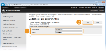 [Nastavení klíče a certifikátu] nebo [Nastavení certifikátu CA].