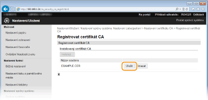 Klikněte na tlačítko [Ukládám] nacházející se vpravo od certifikátu CA, který chcete zaregistrovat.