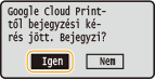 A készüléket mobileszközről vagy a Google Chrome böngészőből is regisztrálhatja. A készülék kijelzőjén a következő megerősítő üzenet jelenik meg a regisztráció befejezése előtt. A regisztráció befejezéséhez nyomja meg az <Igen> gombot.
