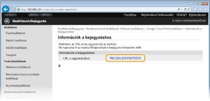 Kattintson az [URL a regisztrációhoz] mezőben látható URL-címre.