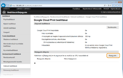 A készülék regisztrálása a Google Cloud Print szolgáltatásban