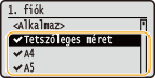 Beállíthatja, hogy csak a gyakran használt papírméretek jelenjenek meg a papírméret kiválasztására szolgáló képernyőn.