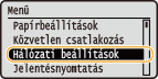 A hálózattal kapcsolatos felsorolásban minden beállítás megtalálható egy-egy rövid leírással. Az alapértelmezett beállítások mellett a (