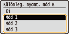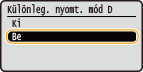Ha a problémát nem oldja meg ennek az elemnek a beállítása, akkor a <Különleges nyomtatási mód D> beállítást állítsa <Be> értékűre. Különleges nyomtatási mód D