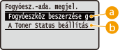 <Fogyóeszköz-adatok megjelenítése (TFF/Toner Status)>