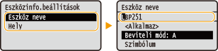 Adja meg az <Eszköz neve> vagy a <Hely> beállítást (Szöveg beírása)