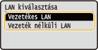 Válassza a <Vezetékes LAN> vagy <Vezeték nélküli LAN> lehetőséget, majd nyomja meg az