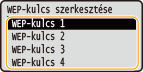 Válassza ki a szerkeszteni kívánt WEP-kulcsot (1–4), és nyomja meg az