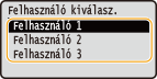 Ha megjelenik a <Felhasználó kiválasztása> képernyő