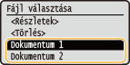 Ha a memóriában több felhasználónak vannak védett dokumentumai, akkor a <Felhasználó kiválasztása> képernyő megjelenik a <Fájl kiválasztása> képernyő előtt. Válassza ki a saját felhasználónevét, majd nyomja meg az